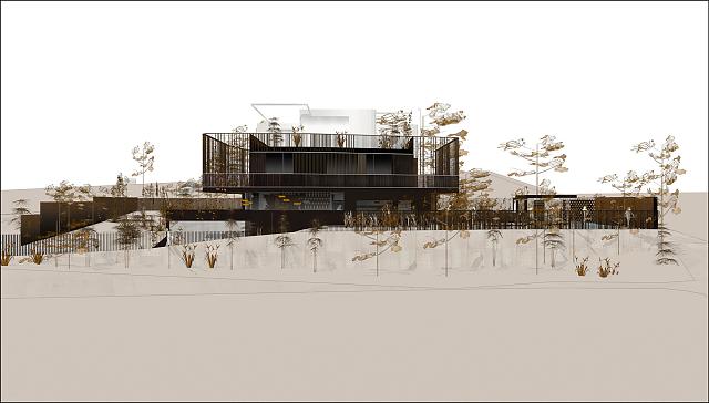 Im Spiel mit der Topografie entsteht zum einen Intimität für das Wohnen zum anderen exponierende Repräsentanz für das Unternehmen. GEWERBEBAU FLORIANEntwurf Büro- und Wohngebäude bei Linz, OÖ