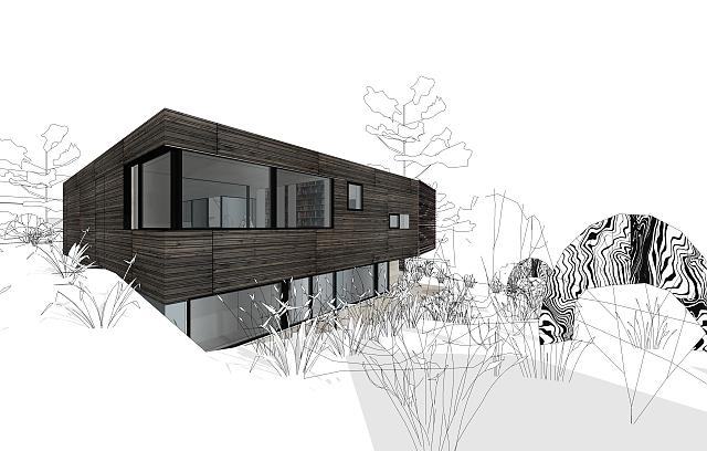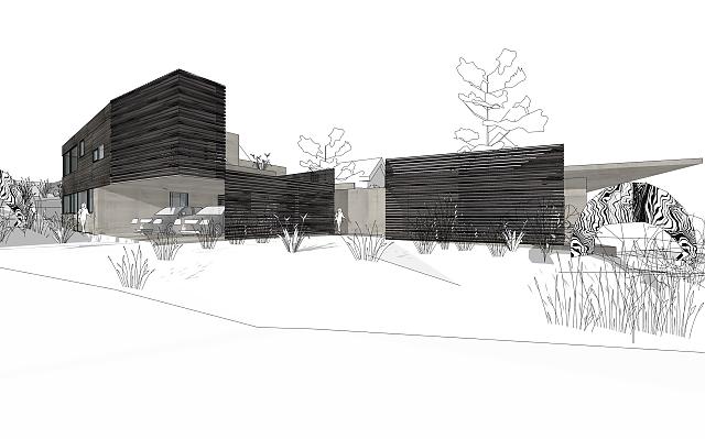 Ein bescheidenes Häuschen aus den 1960er Jahren inmitten eines paradiesischen aber leider sehr einsehbaren Gartens wird adaptiert und um einen winkelförmig flankierenden Bau erweitert um der wachsenden Familie Raum zu geben und gleichzeitig mehr Intimität zu schaffen.